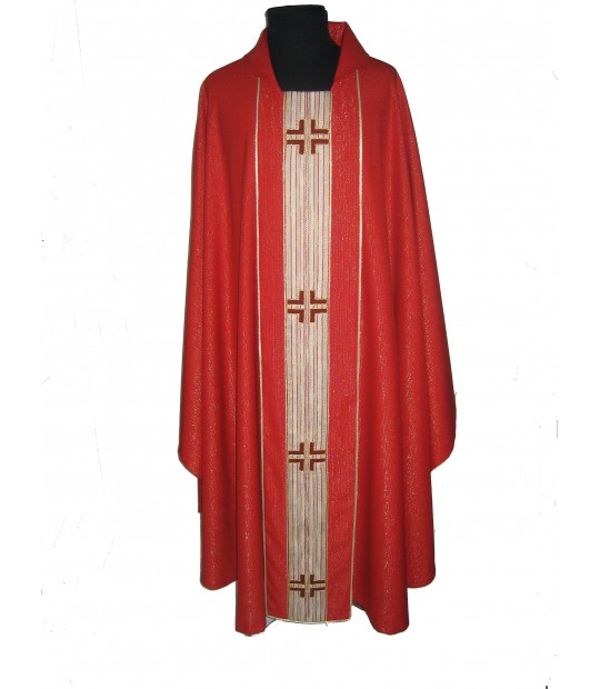 CASULLA CONFECCIONADA EN TELA CON HILOS DORADOS Y CON UN ESTOLON SOBREPUESTO