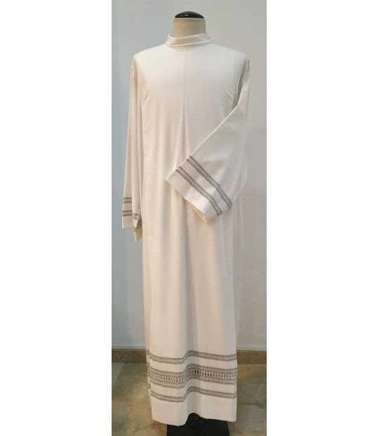 Alba con vainicas bordadas a mano con hilo de algodon.